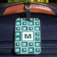 Retro Blue Geometric Squares Pattern Monogram Luggage Tag