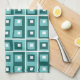 Retro Blue Geometric Squares Pattern Tea Towel