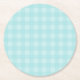 Retro Blue Gingham Chequered Pattern Background Round Paper Coaster