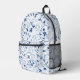 Retro Blue Leaf Swirl Pattern Monogram Printed Backpack