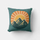 Retro Blue Mountain Sunrise | Outdoor Nature Teal Cushion