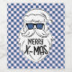 Retro Blue Pink Checkered Santa Claus Christmas Wine Label.