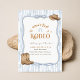 This sweet first rodeo birthday invitation is inspired by soft blue tones, playful rope details, and classic cowboy hat and boots artwork for a charming western feel. Perfect for a cowboy 1st birthday or cowgirl celebration, it suits family friendly ranch parties and cozy gatherings. Personalize the name, age, date, and party details to create a keepsake western birthday invitation guests will adore. Make it special and personalize yours today.