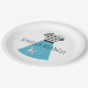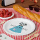 Fun retro design features women's outfit with blue skirt and pink poodle. Customisable text