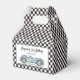 These eye-catching favour boxes blend vintage charm with playful whimsy, featuring a beautifully illustrated retro race car in a serene shade of dusty blue.