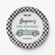 Retro Blue Race Car Two Fast Boy Birthday Paper Plate