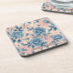 Retro Blue Rose Pattern on Soft Pink Background Coaster