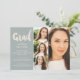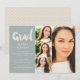 Modern simple retro blue and beige Grad script 4 photos graduation announcement with photo booth style collage, with geometric dots pattern at the back, all the colours are editable.