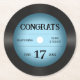 Retro Blue Vinyl Record Wedding Congratulations Round Paper Coaster