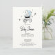 This stylish invitation brings together retro charm and refined simplicity, featuring a hand-illustrated blue baby stroller set against a constellation of nostalgic starbursts. The typography—equal parts classic and playful—creates a sense of confident joy, perfect for honouring a mother-to-be with exceptional taste.
