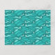 Retro blue waves doodle surf art postcard