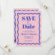 Retro Pink And Blue Wavy Squiggle Photo Wedding Save the Date