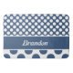 A retro blue and white polka dot name bath mat is part of the -Polka Dot Pattern Take A Dip - collection. Modify the fill colour and the name to customise the birthday gift colour. For help with colour and design customisation, contact https://t.me/KBMD3signs_chat.