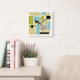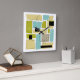 This funky mid-century modern clock features aqua blue, avocado green, yellow, and tan abstract rectangles, along with highlights of black and white starbursts. Add a pop of retro fun to your home decor!