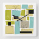 Retro Blue Yellow Squares Mid Century Modern Squar Square Wall Clock