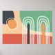 Abstract shapes lanscape, rainbows and sun retro artwork, abstract boho design
