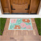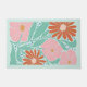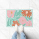 A cheerful colorful boho retro doormat in mint green, pink, and orange flowers, accented by playful leafy foliage. Oversized blooms and colorful hues create an instant sense of summer; fresh, welcoming, and vibrant. Perfect for front doors, patios, apartments, or even kitchens and laundry rooms, this design brings a pop of color wherever you place it. A joyful choice for housewarmings, birthdays, hostess gifts, or anyone who loves bold floral style and happy, mid century inspired decor.