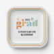 This graduation party paper plate offers a retro theme featuring boho colours. This paper plate makes a great personalised addition to your party decor.