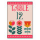 Retro Boho Floral Bold & Bright Colourful Wedding Table Number