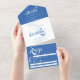 Elevate your wedding stationery with our all-in-one wedding invitation template featuring a charming retro font style! This elegant design features a boho french blue and white script and background, adding a touch of vintage sophistication to your celebration. The integrated layout includes an invitation, RSVP card, and details, making it both stylish and practical. Fully customisable, you can edit the colours and text to perfectly match your wedding theme. Impress your guests with a cohesive and professionally designed invitation set.
