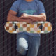 Retro Boho Groovy Chequered Colourful Bohemian 70s Skateboard