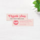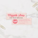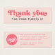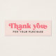 Thank you for your purchase mini insert card with white text "Thank you" ina retro style font. Pink (or custom colour) text on a light blush pink background. Add your own logo on the back. You can change colours, move and resize elements with the design tool.