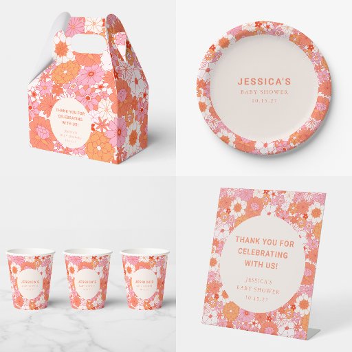 Retro Boho Pink Orange Floral Pattern Baby ShowerDesigned by Opal Ellery