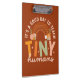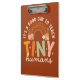Introducing our Retro Boho Preschool Teacher Quote Clipboard! Suitable for back-to-school events or teacher appreciation day. Featuring a rainbow and flowers in yellow, peach, orange, and green featuring a quote "It's a good day to teach tiny humans."