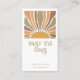 Boho 70's style retro terracotta, orange and green sun and rays business cards with retro flourished typography. A 60's and 70's style vibe. Add your name, company, and city. The back of the card is solid lilac.