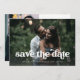This trendy and boho save the date card features two of your favourite personal photos, with retro white handwritten text. The back of the card also features more of your wedding details, plus a scannable QR code to provide your guests with more info. A simple and stylish look that will fit perfectly with your wedding style!