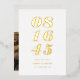Announce your wedding date to family and friends with this customisable gold foil-pressed save the date announcement card. It features retro bols typography and simple typography. Personalise this modern save the date by adding your own details. This gold foil save the date card is also available in other foil colours.
