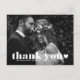 Send thank you with this customisable photo thank you postcard. It features retro bold typography and heart overlay. This photo thank you card will be perfect for a variety of events such as weddings and graduations. Personalise by adding your favourite horizontal photos.
