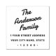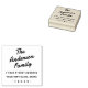 Return address rubber stamp featuring your name in a retro style font with your return address below.