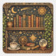 Retro book shelf book lover celestial stars square sticker