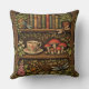 Retro book shelf mushrooms coffee floral cushion