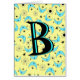Retro boomerang starburst monogrammed greeting card. Background colour can be customised.