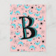 Retro boomerang starburst monogrammed postcard. Background colour can be customised.