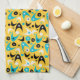 Retro boomerangs and starbursts kitchen towel. Background colour can be customised.