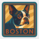 Bold retro-style Boston Terrier portrait capturing the breed’s distinctive tuxedo-like coat, large round eyes, and alert upright ears. Known as the “American Gentleman,” this small, friendly, and intelligent dog is beloved for its charm and spirited personality.