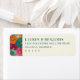 This is a vibrant and elegant address label featuring a colorful floral design on the left side, with large blooms in shades of orange, pink, blue, and yellow. The right side displays the names "Lauren & Benjamin" along with an address in a classic serif font, creating a harmonious blend of nature-inspired beauty and refined typography. It’s perfect for adding a personal touch to envelopes or packages, evoking feelings of warmth and sophistication.