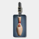 Antique retro bowling pin on blue background printed on a luggage tag for the bowling bag. High quality printing on a durable acrylic with a leather strap. Personalise with your info on the back. Looks great on luggage or bowling bags.