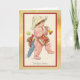 On the front of this Holiday card is a cute Victorian era fine art image of a boy with bugle and drum, wearing his paper hat and celebrating after Santa's visit. The image is placed on a gleaming gold background, and framed in red. It's easy to customise or personalise the inside message to suit your taste. Celebrate Christmas the old fashioned way!