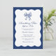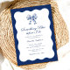 Set the tone for a stylish and trendy bridal shower with this Retro Modern Bridal Shower Invitation, featuring a wavy frame and a vintage-inspired bow adorned with floral fabric. The combination of elegant curves, and a chic navy and royal blue colour palette creates a perfect blend of retro charm and modern sophistication. If you need any help customising your invitation, please let me know—I would love to help you!