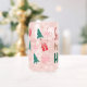 This playful glass features Retro Bright Christmas Tree icons and text that says "Fa, La, La, La, La." Colours include pink, red and green.
