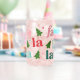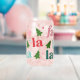 This playful glass features Retro Bright Christmas Tree icons and text that says "Fa, La, La, La, La." Colours include pink, red and green.