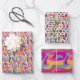 My final set of gift wrap sheets in this collection. These ones are the brighter style of retro. Still pushing the boundaries and using my own take on 70s and 80s hippy nostalgia, these sheets are more colourful and based on some of the more up-beat designs of the time (with my darker twist of course... look closely!).