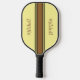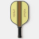 Retro style brown and yellow striped pickleball paddle gets personalised with your name on either side of the stripes.