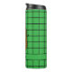 Adorable thermal tumbler featuring a cute happy cartoon brown potato. The background is a cute retro pattern of a black grid over a solid bold green colour. A template at the bottom and left to the potato to add your name.