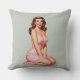 Retro Brunette Pin-up Girl in Pink Cushion