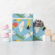Wrap up their gifts with bug. This wrapping paper features illustrations of bugs in bold and colourful retro style with beetles, moths, dragonflies, cicadas and grasshoppers in white, green, yellow, red and black against a light blue background.